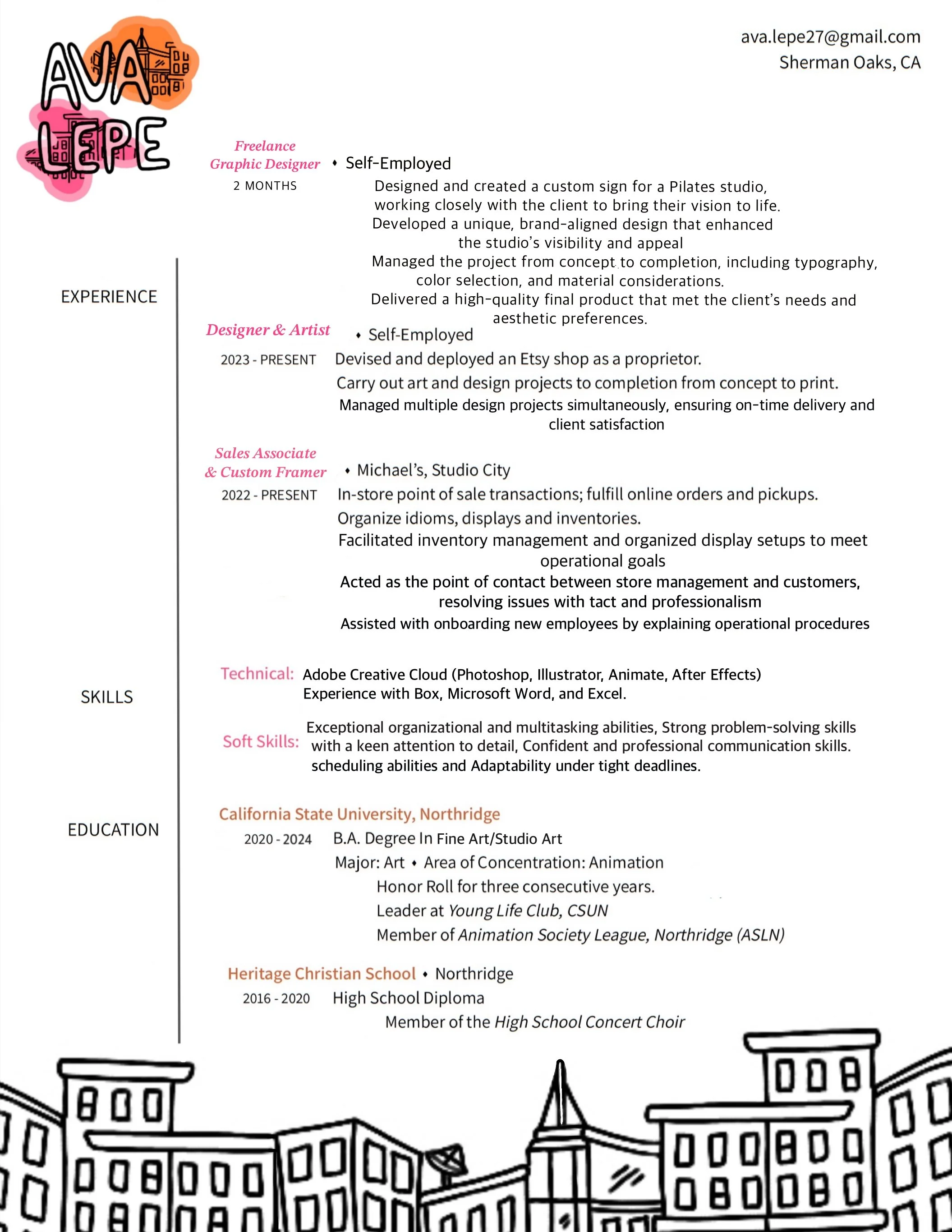 I am a senior at California State University, Northridge in search of an internship and other opportunities to expand on my skills and creativity.